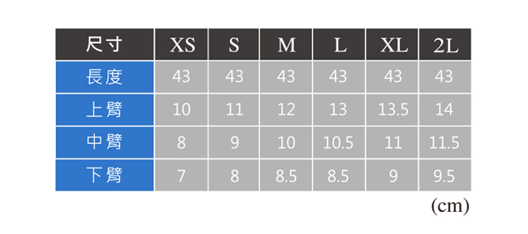 尺寸可分為:XS / S / M / L / XL / 2L